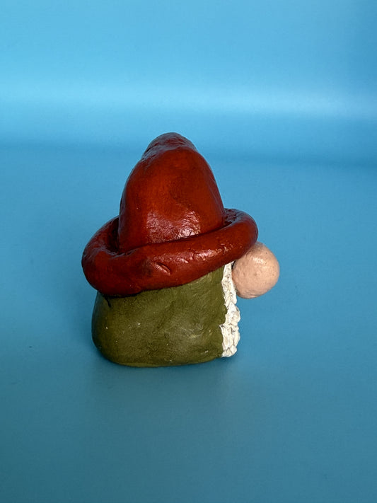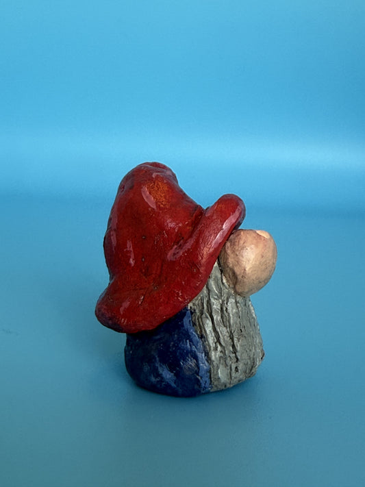 Desk Buddy Gnome with Red Hat and Blue Robes, 1.5-Inch Clay Figure