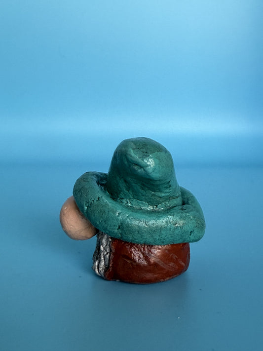 Desk Buddy Gnome with Aqua Hat and Brown Robes, 1.5-Inch Clay Figure